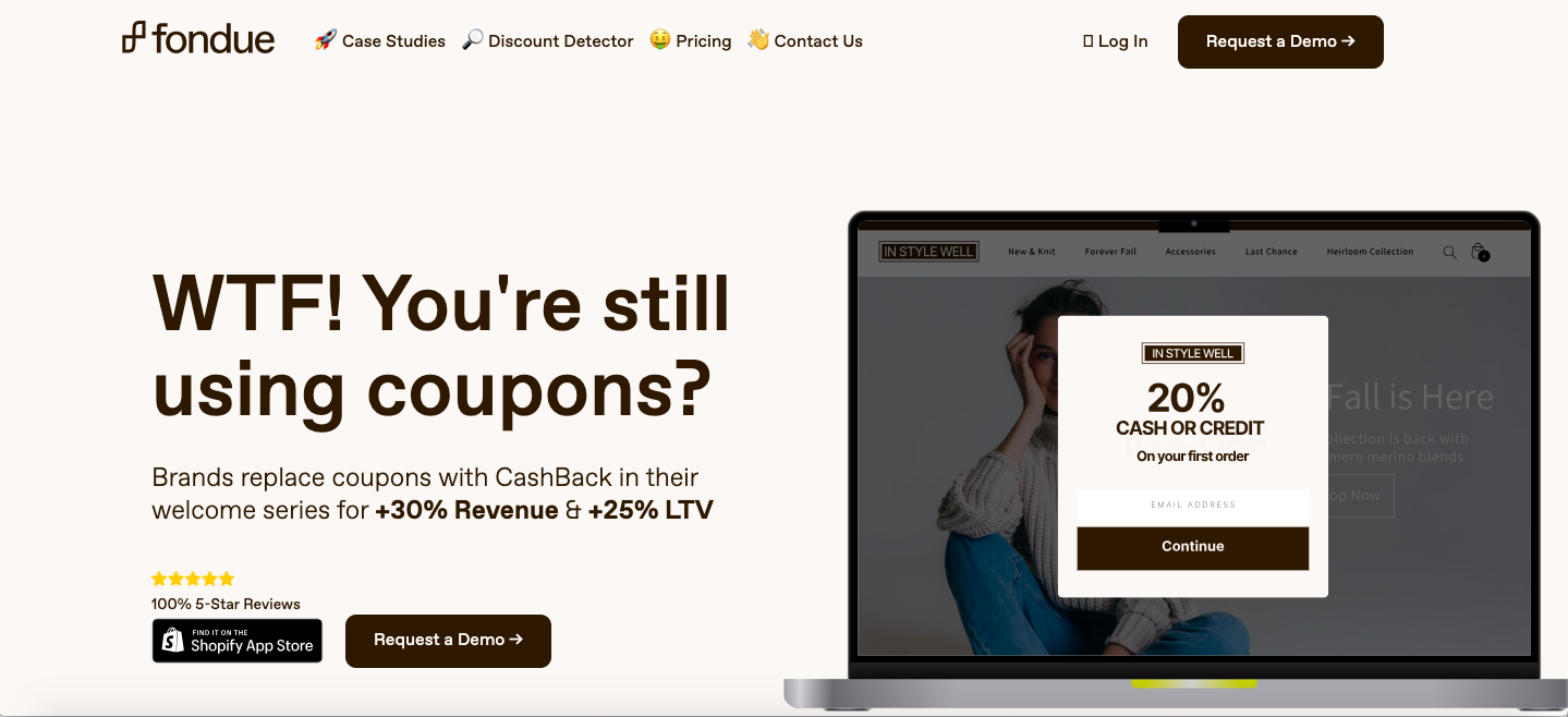 FondueServices: website copy, blogs/articles, case studies View Site Case Studies How Polonio Group Increased Welcome Flow LTV by 25.4% Duradry Stays Fresh & Clean, Sees Revenue Jump 21% Birthdate Co Increases Conversions from Welcome Flow 296% Crossnet Increases SMS Sign Ups by 43.8% Blogs/Articles Discounting Using % vs. $ The 'State of Discounts' in 2023 Unlock the Power of SMS with Postscript Welcome Series Popup Deep Dive: Top 250 Brands